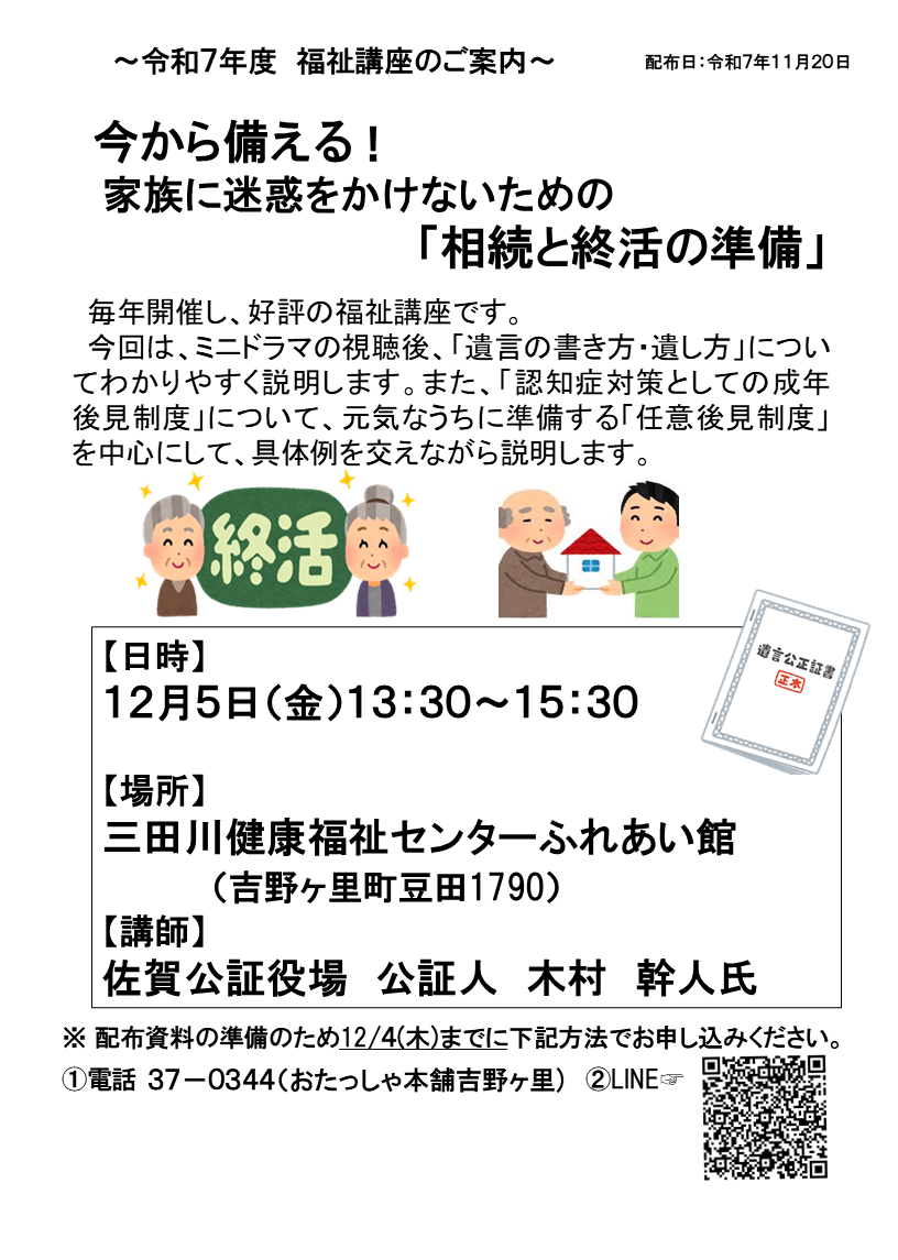 身近な問題である相続・遺言と、判断能力が不十分な方を支援する成年後見制度の1つである「任意後見制度」について、講演会を実施します。