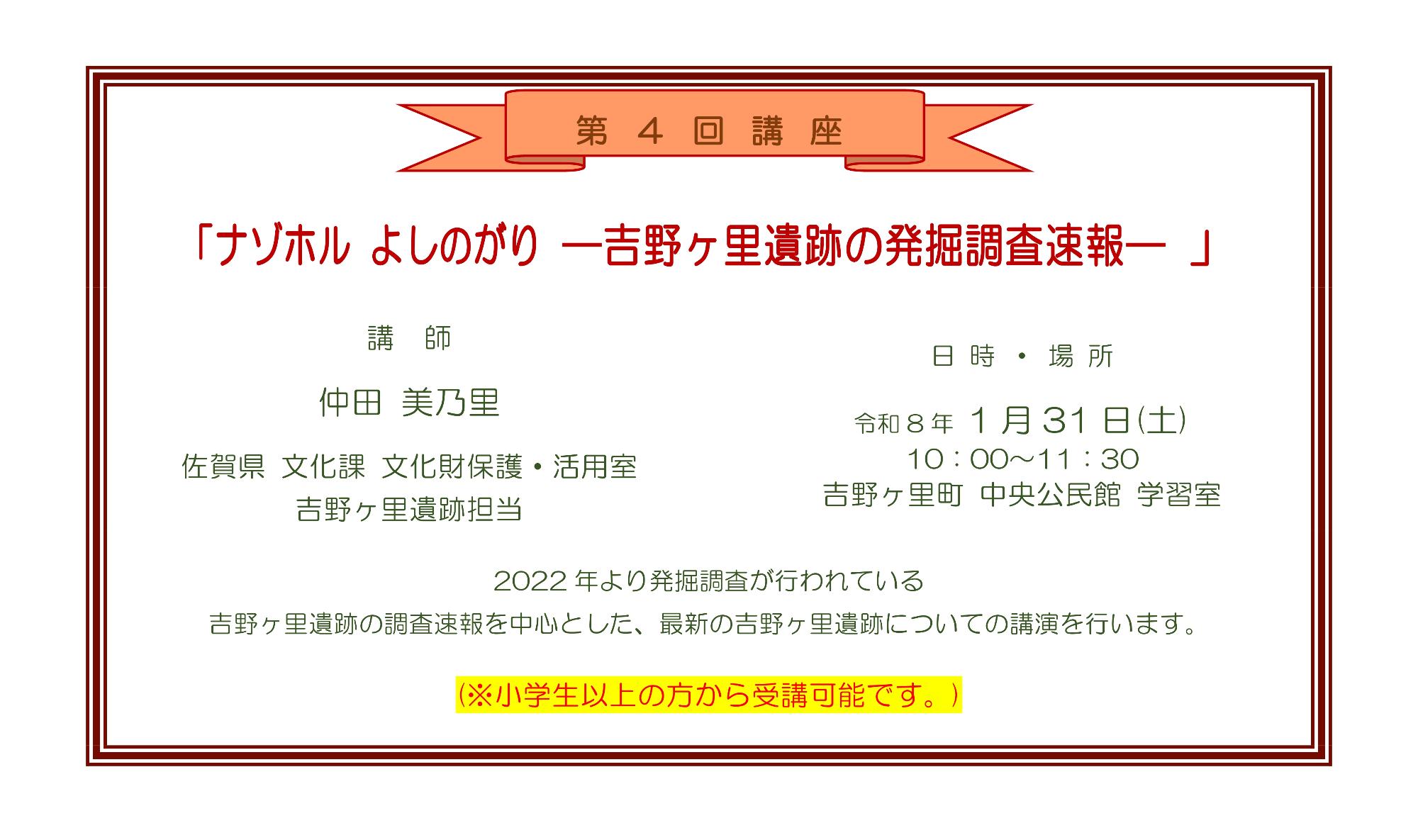 今年度最後となる第4回目講座は、2022年より続いている吉野ヶ里遺跡の発掘調査の最新情報をお届けする講座になります。