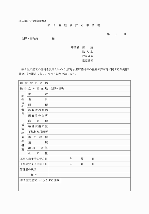 ○吉野ヶ里町墓地等の経営の許可等に関する条例施行規則
