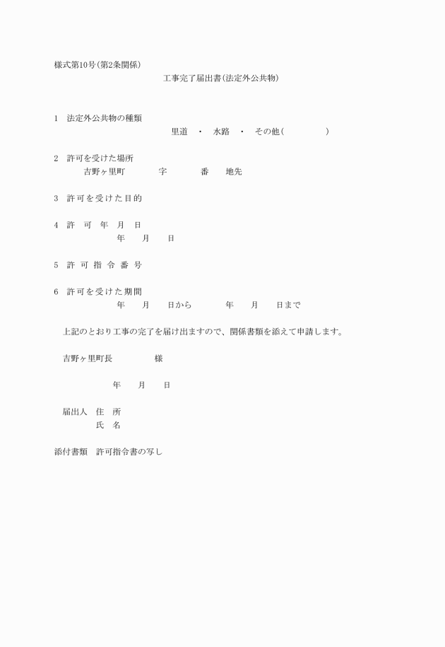 ○吉野ヶ里町法定外公共物の管理に関する条例施行規則